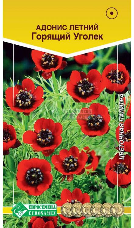Адонис летний – декоративное цветущее растение семейства лютиковых, род объединяет 20–45 видов разных растений, в природных условиях их можно повстречать в умеренных областях Азии, а также в Европе. Адонис — это латинское название, получено в честь сына кипрского царя, если верить мифам. В Адониса влюбилась Афродита, но он погиб на охоте. Кровь погибшего юноши окрасила все цветки в ярко-красный цвет. Но существует и другая версия: данное растение было названо в честь ассирийского бога Адона. Большой популярностью у садоводов адонис стал пользоваться лишь в конце 17 столетия. С этого времени такой цветок можно довольно часто встретить как в садах, цветниках, так и в парках. Адонис - Горящий уголек, англичане именуют его глаз фазана. Цветки одиночные, в состав околоцветника входят плоские листочки красного цвета, имеющие темное пятнышко в центральной части. Цветение наблюдается с июня по август. Применяется в садоводстве для украшения склонов и смешанных бордюрных композиций. Высота растений-30 см Диаметр цветка-6 см