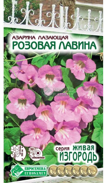Азарина лазающая - пышная, обильно цветущая лиана семейства Норичниковые, получила свое название благодаря длинным и очень цепким побегам, предпочитающим расти горизонтально. В высоту стебли обычно поднимаются на 2-3 м, хотя в природе могут вырастать и до 7 м. В культуре с 19 века. Родиной данной культуры является Мексика, поэтому ее часто называют Мексиканская Красавица. Растение очень декоративно, обладает густой бархатистой листвой сердцевидной формы, на фоне которой распускаются трубчатые цветки, похожие на нежные граммофончики небольшого размера очень яркой окраски. Достоинство азарины лазающей в универсальности ее применения. Чаще всего ее используют для вертикального озеленения арок, заборов, беседок и балконов. Посадив ее в большую подвесную корзину или на искусственную возвышенность, она превратиться в роскошное ампельное растение. Отличный почвопокровник, за две недели она способна покрыть сплошным ковром зелени участок земли в 1 кв.м. Цветение продолжается с конца весны до поздней осени.