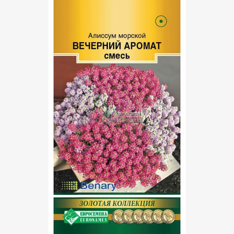 Lobularia maritima Wonderland Deep Rose + Wonderland Lavender Смесь Вечерний Аромат состоит из популярного летника: алиссума приморского, низкорослые кустики которого прекрасно ветвятся, образуя яркие пушистые шарики, гармонично соседствующие в своем цветовом сочетании. Алиссум, возможно, при всем желании не получится назвать цветком с исключительными декоративными качествами, так как растение не режет глаз экзотической красотой, но его обаяние неотразимо, ведь его простенькие цветочки - верные спутники многих поколений с раннего детства. Он прекрасен в другом. Более неприхотливого и благодарного растения просто не существует. Алиссум чутко реагирует на самый скромный уход своим пышным цветением. Цветение настолько обильное, что листвы практически не видно. Идеально подходит для выращивания в подвесных корзинах, балконных ящиках, различных контейнерах, будет уместен в любых солнечных уголках сада, наполняя его медовым ароматом. Посадите его и любуйтесь цветками, наслаждайтесь их ароматом - три месяца хорошего настроения вам гарантировано. Высота растения-10-15 см
