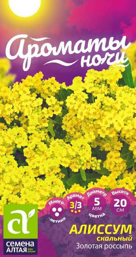 Яркоцветущий ковровый многолетник высотой до 20 см, замечательное украшение каменистого сада и бордюрных посадок. Растение формирует множество побегов, одревесневающих в нижней части, быстро разрастается и покрывает посадки ярким ковром. На фоне серовато-зеленых листьев контрастно смотрятся компактные золотисто-желтые кисти соцветий, состоящие из мелких душистых цветков. Зацветает алиссум на второй год после посадки. Широко используется для посадок в цветники, рабатки, на альпийские горки. Светолюбивое, холодостойкое растение, предпочитает легкие, рыхлые, воздухо- и влагопроницаемые питательные почвы с небольшим содержанием извести. Посевы на рассаду проводят в конце марта – начале апреля. Семена равномерно распределяют по поверхности увлажненного субстрата и слегка вдавливают в него, не заделывая. Емкость накрывают пленкой (до появления всходов) и помещают в светлое теплое (+22-25°С) место, периодически снимая пленку для проветривания посевов и удаления конденсата. Всходы появляются на 18-20 день, температуру снижают до +18-20°C. Сеянцы пикируют с появлением 2-3-х настоящих листиков. В грунт рассаду высаживают в конце мая - начале июня, когда минует угроза заморозков. Посадочный интервал 10-15 см. Цветение начинается уже в июне. После окончания первой волны цветения растения необходимо обрезать, оставив 5 см над уровнем грунта, обильно полить и подкормить комплексным удобрением. Повторное цветение ожидается через 1,5-2 недели. Возможен посев семян в открытый грунт в начале мая в холодный парник.