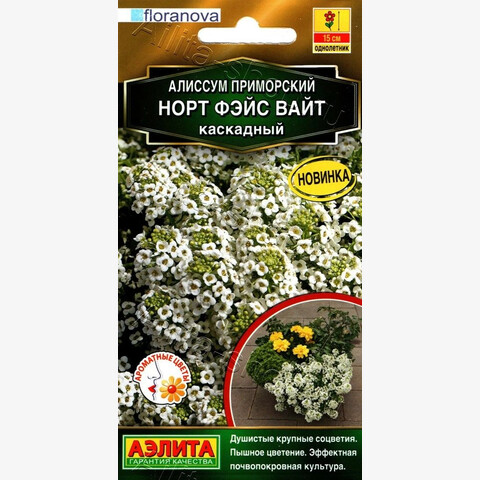 Непревзойденный крупноцветковый тетраплоидный алиссум от английской компании Floranova. Высокоустойчив к перепадам погодных условий. Кустики уникального каскадного типа, пышные, густые, высотой не более 13-15 см, в ширину распространяются до 30-40 см. Могут использоваться в качестве почвопокровной культуры. Эффектные ароматные цветки диаметром до 0,5 см собраны в белоснежные плотные соцветия. Сорт очень красиво смотрится в подвесных корзинах и садовых вазонах, подходит для украшения балконных контейнеров и ковровых посадок в цветниках различного типа.