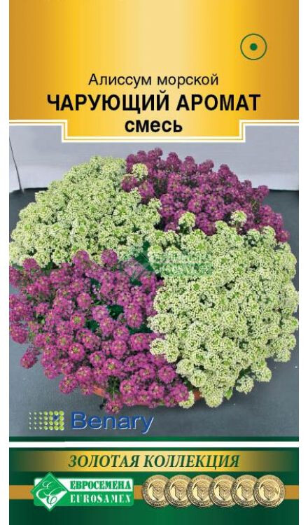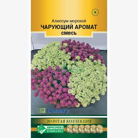 Lobularia maritima Wonderland Deep Purple & Wonderland White Смесь Чарующий Аромат- состоит из популярного летника: алиссума приморского, низкорослые кустики которого прекрасно ветвятся, образуя яркие пушистые шарики, гармонично соседствующие в своем цветовом сочетании. Алиссум, возможно, при всем желании не получится назвать цветком с исключительными декоративными качествами, так как растение не режет глаз экзотической красотой, но его обаяние неотразимо, ведь его простенькие цветочки - верные спутники многих поколений с раннего детства. Он прекрасен в другом. Более неприхотливого и благодарного растения просто не существует. Алиссум чутко реагирует на самый скромный уход своим пышным цветением. Цветение настолько обильное, что листвы практически не видно. Идеально подходит для выращивания в подвесных корзинах, балконных ящиках, различных контейнерах, будет уместен в любых солнечных уголках сада, наполняя его медовым ароматом. Посадите его и любуйтесь цветками, наслаждайтесь их ароматом - три месяца хорошего настроения вам гарантировано. Высота растения-10-15 см