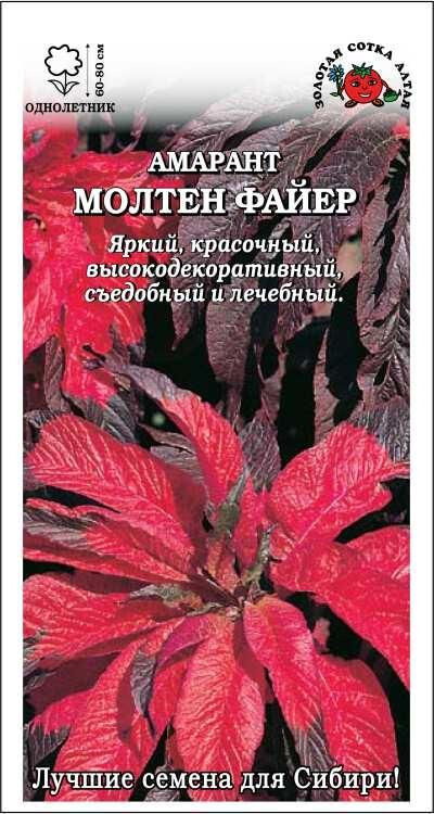 Яркий и необычный летник с декоративной листвой. Кусты крепкие, прямостоячие, ветвистые. Молодая листва имеет яркую красно-малиновую окраску, которая, по мере отрастания листьев, меняется на шоколадно-вишневую. Темно-фиолетовые цветочки собраны в соцветия, напоминающие петушиный гребешок. Название этого растения переводится как неувядающий, что соответствует действительности, ведь амаранты способны украшать сад не только летом, но и поздней осенью, когда большинство растений уже пожухли и завяли. Используется одиночно и группами на газоне, для оформления клумб, рабаток и миксбордеров. Амарант не только высокодекоративный, он является овощным и лекарственным растением, содержит легкоусваиваемый белок, сквален, комплекс витаминов, рутин, каротин, стероиды, желчную, пантотеновую и другие кислоты. Молодые листья и побеги добавляют в салаты, супы, пюре, овощные рагу и используют как приправу к соленьям. Семена применяют как крупу, перемалывают в муку, которая по вкусу не уступает пшеничной, или используют в медицинских целях. Кроме того, амарант – это ценная кормовая культура и хороший сидерат.