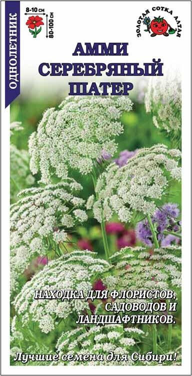 Высокодекоративное растение, используемое для придания пышности клумбам и букетам. Кусты прямостоячие, с сильноветвистым стеблем, перисто-рассеченными листьями и крупными шапками ажурных белоснежных соцветий-зонтиков. Раскачиваясь на ветру, они радуют своим изяществом и придают изысканности цветникам. Особую же ценность амми представляет для флористов.