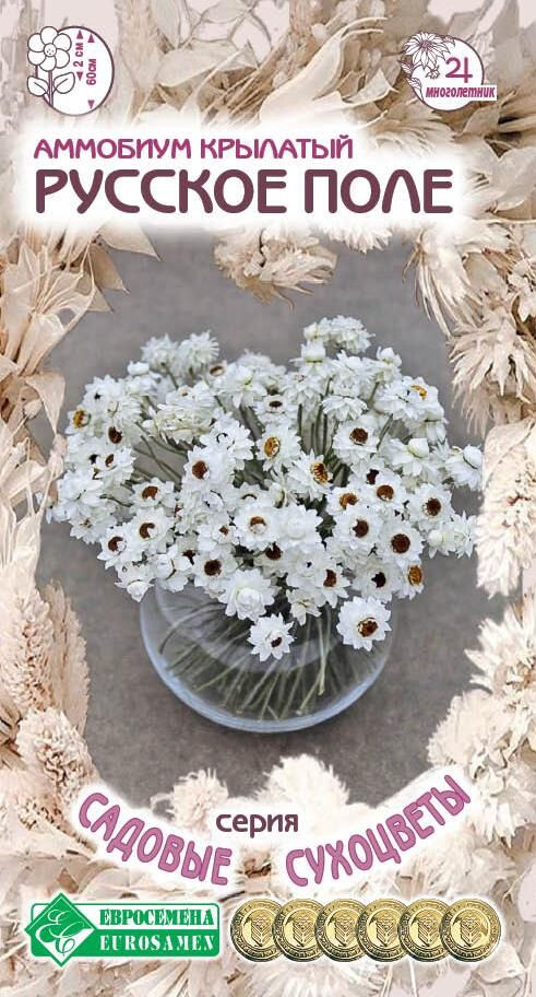 Аммобиум крылатый входит в популярную группу цветов-сухоцветов, пригодных для срезки в живые букеты и для высушивания. Их правильно обработанные и высушенные соцветия, оставаясь открытыми, не теряют своей красивой формы и окраски. Особенностью таких сухоцветов являются несколько жестковатые цветки. Их лепестки имеют твердую соломистую структуру, что обеспечивает длительную сохранность цветка, его формы и окраски при высушивании. Аммобиум крылатый — многолетнее растение из семейства Астровые, но в садовой культуре оно выращивается как однолетнее. Аммобиум широко используется как для озеленения, так и для срезки. Из его низких сортов можно сделать прекрасную рабатку или использовать в альпинарии. Красив он и в живых букетах. Однако главная сфера его применения в срезке — это в высушенном виде как сухоцвет, т.к. его соцветия при высушивании не теряют формы и окраски. Их срезают для сушки в стадии полу раскрывшегося бутона. За лето аммобиум образует довольно мощный и очень красивый куст, с прикорневой розеткой листьев и многочисленными стеблями-цветоносами, растущими из центра розетки.