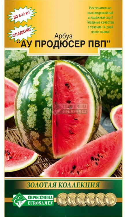 Раннеспелый – среднеранний сорт арбуза американской селекции. Период от полных всходов до съемной спелости (1-го сбора плодов) 65-83 дня. Предназначен для промышленного и любительского выращивания, зарекомендовал себя как исключительно высокоурожайный и надежный сорт. Защищен от таких популярных болезней, как антракноз и гниль, поэтому его урожайность крайне высокая. Плод округлый, гладкий, массой 2,5-5,2 кг, но может достигать 8-12 кг. Кора средней плотности, с чередованием зеленых и светло-зеленых полос. Мякоть ярко-красного, насыщенного цвета. В сердцевине семечки черного цвета. Вкус – сладкий, сахарный. Сорт прекрасно переносит перевозки на дальние расстояния.