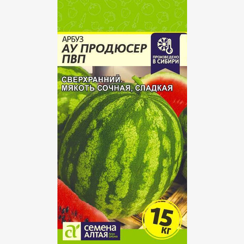 Сверхранний (65 дней) сорт. Плоды массой до 15 кг, с тонкой кожурой. Мякоть хрустящая, очень сладкая. Отличная транспортабельность. Высокая урожайность. Устойчив к комплексу заболеваний. Место посадки: песчаные, хорошо аэрированные почвы, участок должен быть защищён от ветров Освещение: обильное, плохо переносит затенение Предпосевная подготовка: перед посевом семена в течении 10 минут обрабатывают в 0,5% растворе марганцовокислого калия, затем промывают чистой водой Сроки посева: при прогревании почвы на глубине 8-10 см до 15°С Посев на рассаду: за 25-30 дней до высадки (апрель-май). Посев проводят в рыхлую питательную почву, до появления семядолей температура воздуха и почвы должна составлять 23–27°C Посев в грунт: когда минует угроза возвратных заморозков, а почва прогреется до 15..18°C (июнь). Посев проводят на глубину 1,5-2 см. До появления всходов лунки накрывают стеклом, пленкой для сохранения влаги, тепла и защиты всходов от птиц Пикировка/перевалка: рассаду высаживают, когда минует угроза возвратных заморозков, в фазе 3-4 настоящих листьев, соблюдая посадочный интервал 140х100 см в открытом грунте, в теплицах - 70х70 см (при использовании шпалер) Уход: почва под растениями должна быть всегда слегка увлажнена. Наиболее интенсивный полив следует обеспечить в период цветения и налива плодов
