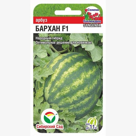 Раннеспелый. Созревает через 60-64 дня от высадки рассады. Отличается высокой и стабильной урожайностью по сравнению с другими сортами и гибридами. Хорошо развивается при минимальном поливе. Высокоустойчив к основным болезням арбуза: антракнозу и фузариозному увяданию. Благодаря неприхотливости особенно рекомендуется для огородников - новичков. Растение мощное с отличной силой роста, плети короткие. Хорошо завязывается в любых условиях. Плоды овально- округлой формы, очень крупные, 8-11 кг. Мякоть ярко-красная, без волокон, сахарная на изломе, хрустящая. Вкус сладкий с выраженным арбузным ароматом. Кожура не толстая, но плотная, что позволяет легко транспортировать и хранить арбузы. Хорошо растет на песчаных и супесчаных, легких, хорошо освещенных почвах. Перед посадкой рекомендуется обработать семена раствором марганцовки. Рассаду высаживают после прекращения угрозы заморозков, в возрасте 3 - 4 настоящих листьев. Уход заключается в поливах, подкормках и рыхлении.
