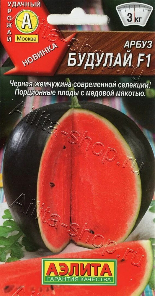 Настоящая жемчужина современной селекции. Эксклюзивный порционный гибрид мегасладкого арбуза с красивой черной корой. Растения выносливые, крепкие, активно завязывают плоды. Урожай начинает созревать через 80-100 дней от всходов. В теплицах средней полосы масса плодов около 2-3 кг. В открытом грунте южных регионов можно вырастить арбузы весом более 4-6 кг. Ягоды округлые, с очень сочной, алой, хрустящей, нежной мякотью. Кора плотная, поэтому продукция хорошо транспортируется. Красивая форма и окраска плодов стабильны даже при перепадах погодных условий.