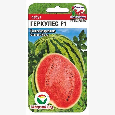 Среднеранний (67-90 дней) тонкокорый гибрид с крупными плодами массой до 10 кг и высоким выходом товарной продукции (до 96%). Гарантирует высокое качество плодов, отлично транспортируется на дальние расстояния. Рекомендуется для выращивания в фермерских хозяйствах и на личных садовых участках. Растение крепкое, плетистое. Плоды эллиптические, светло-зеленые с широкими размытыми зелеными полосами, массой 8-10 кг. Кора тонкая, мякоть красная, с малым количеством семян и высокой дегустационной оценкой вкуса. Гибрид устойчив к антракнозу и фузариозному увяданию. Урожайность до 8 кг/м2. Хорошо растет на песчаных и супесчаных почвах и прогреваемых, освещенных участках.