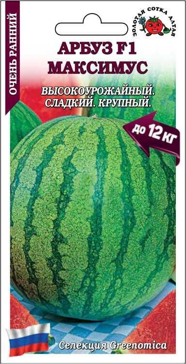 Один из самых ранних гибридов, дающий высокий и стабильный урожай отличного вкуса и качества. От всходов до сбора около 63-68 дней. Растение компактное, среднеплетистое. Плоды однородные, округлые, массой 6-8 кг (до 12 кг), с рисунком в виде зеленых полос на светло-зеленом фоне. Мякоть нежная, сочная, насыщенно красная, сладкая (содержание сахара 11,5-12%). Семечка маленькая.