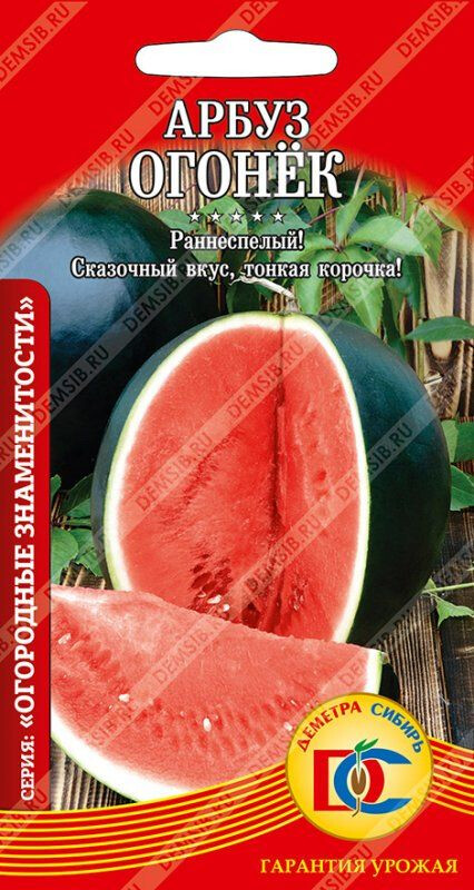 Самый популярный раннеспелый (70-85 дней) сорт. Предназначен для выращивания в пленочных теплицах и открытом грунте. Растение короткоплетистое. Плоды шаровидные, темно-зелёные со скрытым рисунком, массой 1,7-2,3 кг. Кора тонкая. Мякоть красная, нежная, сочная, сладкая.