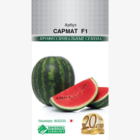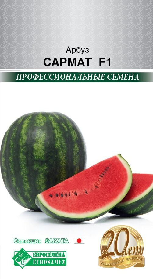 Арбуз – полезный продукт, дающий организму не только ощущение свежести, но и приносящий пользу для работы сердца, он способствует снижению уровня холестерина и соответственно снижает риск развития сердечно - сосудистых заболеваний. Сармат - новый раннеспелый гибрид арбуза для производства, как без укрытий, так и под временными пленочными тоннелями. Растения быстро развивают мощную листву, хорошо укрывающую плоды. Гибрид практически не страдает от солнечных ожогов. Плоды массой 8-10 кг, однородные по размеру и форме, отличных вкусовых качеств. Гибрид отличается плотной мякотью, в то же время сочной и с высоким до 12% содержанием сахаров. Благодаря плотной мякоти плоды хранятся до двух недель без потери качества и отлично транспортируются. Имеет высокую устойчивость к фузариозу и антракнозу.