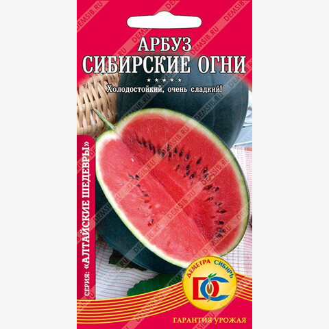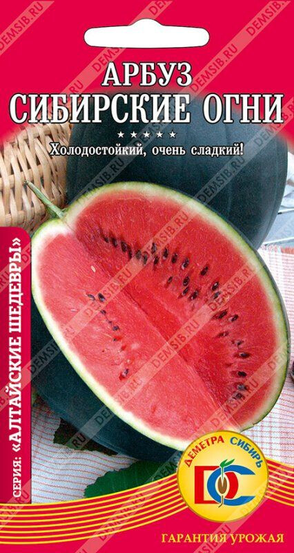 • Раннеспелый (75-85 дней) холодостойкий сорт Западно-Сибирской овощной опытной станции. Растение среднеплетистое. Плоды шаровидные, гладкие, темно-зеленые, с тонкими черно-зелеными полосами, массой 2-2,5 кг. Мякоть темно-красная, нежная, очень сладкая.