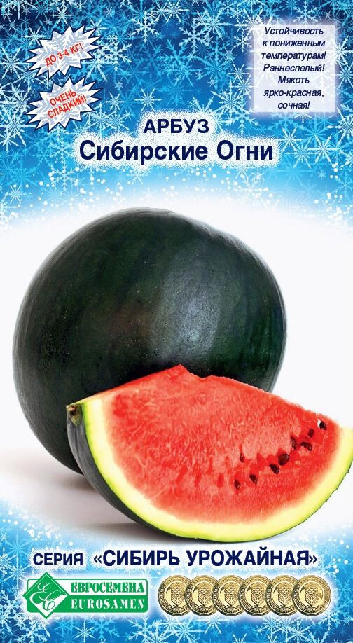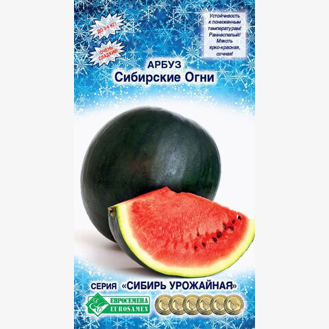 С приходом летних дней и до поздней осени сладковато-тропический запах сочного арбуза можно учуять на каждой кухне. Этот плод славится изумительным вкусом и тонким ароматом, который ассоциируется со свежим морским бризом, солнечными лучами и ощущением легкости и блаженства. У сибирских дачников пользуются популярностью такие сорта арбуза, для которых характерна хорошая переносимость неблагоприятных климатических условий, прежде всего. Арбуз Сибирские Огни вполне соответствует этим параметрам. Это холодостойкий, очень сладкий, раннеспелый сорт. Период от полных всходов до первого сбора плодов 75-85 дней. Плоды шаровидной формы, массой 2,5-5 кг. Мякоть ярко-красная, сочная. Устойчивость к фузариозу, пониженным температурам и засухе. Транспортабельность плодов хорошая. Один из лучших ранних сортов для выращивания на приусадебных участках и в пленочных теплицах