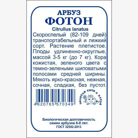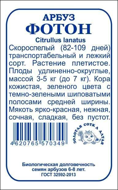 Скороспелый (82-109 дней) транспортабельный и лежкий сорт. Растение плетистое. Плоды удлиненно-округлые, массой 3-5 кг (до 7 кг). Кора кожистая, зеленого цвета с темно-зелеными шиповатыми полосами средней ширины. Мякоть ярко-красная, нежная, сочная, сладкая, без пустот.
