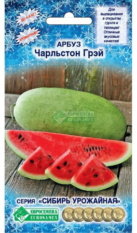 С приходом летних дней и до поздней осени сладковато-тропический запах сочного арбуза можно учуять на каждой кухне. Этот плод славится изумительным вкусом и тонким ароматом, который ассоциируется со свежим морским бризом, солнечными лучами и ощущением легкости и блаженства. Арбуз Чарльстон Грэй- среднеранний сорт арбуза. Период от полных всходов до первого сбора плодов 76-90 дней, на уровне стандарта Астраханский. Плоды цилиндрической формы, с белесым фоном, без рисунка, с очень слабой пятнистостью, массой 3,4-7,9 кг. Окраска кожицы светло-зеленая, без полосок, благодаря чему плоды не нагреваются в жаркую погоду и прекрасно утоляют жажду. Отличается замечательными вкусовыми качествами, мякоть нежная, сахаристая, красного цвета, долгое время хранится, не теряя вкусовых качеств. Содержание сухого вещества 6,7-9,1%, общего сахара 5,5-6,9%. Семена крупные, коричневые, с рисунком в виде точек и пятен. Предназначен для выращивания в открытом грунте и пленочных теплицах.