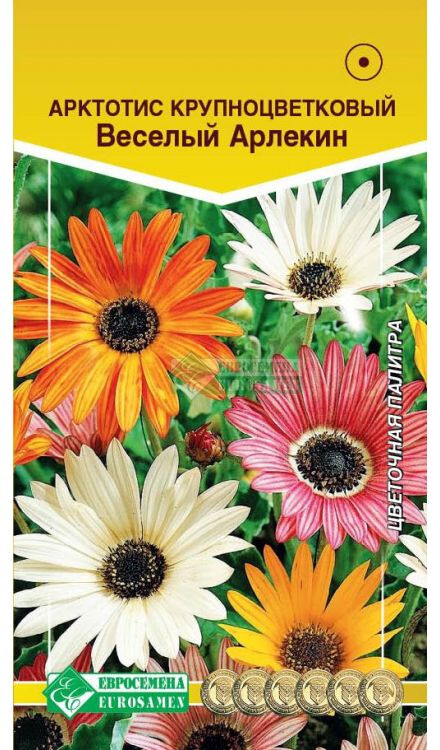 Арктотис давно известен человечеству и выращиванием его занимаются свыше столетия, это южноафриканский аналог всем известной ромашки. Своё название этот представитель флоры получил благодаря строению листовых пластин, так как они чем-то напоминали ушную раковину медведя. Это ярчайший экземпляр в Астровом семействе. Веселый Арлекин- африканец, от основания кустика до кончиков цветоносных стеблей окутан серебристым опушением, на фоне которого крупные корзинки-соцветия смотрятся особенно нарядно. Своими очертаниями цветы медвежьего уха чем-то сходны с герберами, но главным отличием является то, что последние никогда не закрываются, а Arctotis с приходом вечерних часов или в пасмурную погоду закрывает свои соцветия. Прекрасно выглядит одиночными группами и в смешанных посадках на каменистых горках, в бордюрах вдоль дорожек, с помощью таких цветов можно декорировать миксбордеры. Хорошо сочетается с летниками ярких окрасок и зеленой листвой, дает прекрасную срезку. Высота растения-35 см Диаметр цветка-10 см