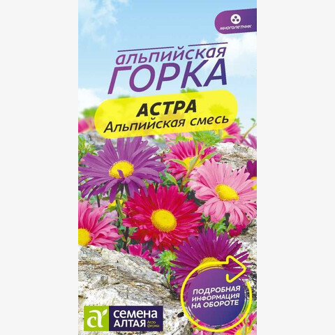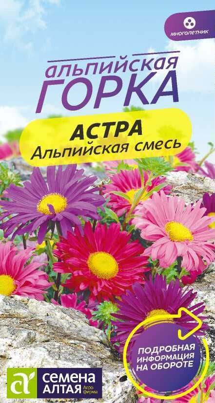Астра альпийская - многолетнее декоративное растение. Формирует компактный кустик с многочисленными побегами высотой 20-30 см, увенчанные одиночными ромашковидными соцветиями диаметром 4-5 см. Растение впечатляет игрой красок: белые, сиреневые, розовые, голубые лепестки вокруг желтого глазка соцветий. Станет великолепным украшением каменистой горки или коврового цветника. Холодостойкое, светолюбивое растение, может расти в полутени. Не выносит переувлажнения и засухи. Хорошо растет на обычной садовой почве без свежей органики, кислые почвы необходимо нейтрализовать известью. Семена на рассаду высевают в марте-апреле, глубина заделки 0,5 см. Для улучшения всхожести рекомендуется перед посевом замочить семена на 10 минут в спиртосодержащей жидкости. Посевы содержат при температуре +15-18°С. Сеянцы пикируют с появлением первой пары настоящих листочков. В открытый грунт рассаду высаживают во второй половине мая. Перед высадкой в открытый грунт её закаливают в течение 1-2 недель, снизив температуру до +10°С. Схема посадки 20х20 см. Возможен посев семян в открытый грунт в конце апреля под временное укрытие на глубину 0,5-1,0 см (с последующим прореживанием всходов), или под зиму (в конце октября) на глубину 3 см. Сверху посевы мульчируют торфом или опилками слоем 3-5 см. Весной посевы раскрывают. Цветение длится с июля до конца сентября.