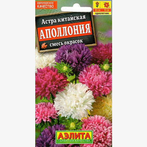 Callistephus chinensis mixed Тип: Хризантемовидные Серия формирует растения с прочным пирамидальным кустом высотой 60-70 см. Соцветия Ø 10-12 см, густомахровые. Цветение обильное – на кусте одновременно раскрывается не менее 10 соцветий. Назначение универсальное: растения дают срезку высочайшего качества и украшают цветники до устойчивых заморозков.