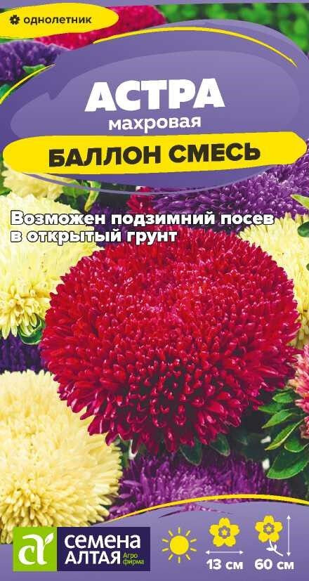 Астра Баллон - это настоящий воздушный шар! Серия превосходит все махровые астры, степень ее махровости неописуема. Благодаря густо расположенным лепесткам ладьевидной формы, капли дождя не проникают в цветок, а скатываются с него! Растение пирамидальной формы, высотой 50-60 см, с прочными цветоносами. Соцветия плотные шаровидные насыщенных ярких окрасок, диаметром 10-13 см, по 6-8 шт. на растении. Смесь великолепно подходит для оформления клумб и рабаток. В срезке сохраняет свои декоративные свойства до двух недель. Холодостойкое, светолюбивое растение, может расти в полутени. Не выносит переувлажнения и засухи. Хорошо растет на обычной садовой почве без свежей органики, кислые почвы необходимо нейтрализовать известью. Семена на рассаду высевают в марте-апреле, глубина заделки 0,5 см. Для улучшения всхожести рекомендуется перед посевом замочить семена на 10 минут в спиртосодержащей жидкости. Посевы содержат при температуре +15-18°С. Сеянцы пикируют с появлением первой пары настоящих листочков. В открытый грунт рассаду высаживают во второй половине мая. Перед высадкой в открытый грунт её закаливают в течение 1-2 недель, снизив температуру до +10°С. Схема посадки 25х25 см. Возможен посев семян в открытый грунт в конце апреля под временное укрытие на глубину 0,5-1,0 см (с последующим прореживанием всходов), или под зиму (в конце октября) на глубину 3 см. Сверху посевы мульчируют торфом или опилками слоем 3-5 см. Весной посевы раскрывают. Цветение длится с июля до конца сентября.
