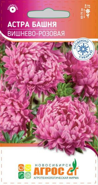 Сортотип пионовидная. Однолетник. Растение колонновидное, с прочными длинными цветоносами. Соцветия крупные (до 8 см в диаметре), густомахровые, вишнево-розовые. Растение светолюбивое, холодостойкое (может выносить заморозки до -3-4°С). Предпочитает рыхлые питательные почвы. В засушливый период нуждается в поливе. Уход обычный – прополки, аккуратное рыхление, 2-3 подкормки минеральными удобрениями. Семена на рассаду сеют в конце марта-начале апреля. Всходы появляются на 7-14 день. При появлении первого настоящего листа сеянцы пикируют. Если подсемядольное колено у сеянцев сильно вытянулось, то при пикировке их можно заглубить почти до семядольных листочков. В открытый грунт рассаду можно высаживать с середины мая. Возможен весенний и подзимний посев в грунт. В озеленении астры применяются очень широко. Их высаживают на клумбах, рабатках, в миксбордерах, группах. Используются для срезки. 65-75 III-IV V;IX-X V-VI 30х30 VII-IX