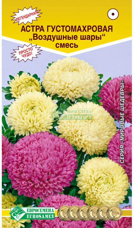 Легендарная астра! Превосходит все известные сорта астр по степени махровости и плотности шаровидных соцветий. Кусты пирамидальной формы с прочными цветоносами самой разнообразной окраски. На одном растении формируется до 6-8 соцветий диаметром до 13 см. Соцветия настолько густомахровые, что вообще не подвергаются проникновению дождя. До двух недель стоит в срезке без проблем, сохраняя свою декоративность и шарм! Она без сомнения займет достойное место в Вашем саду. Посадив ее однажды в своем саду, вы уже никогда не сможете от нее отказаться.