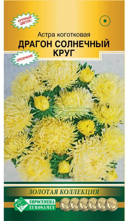 Солнечный Круг- звезда осени, продолжение селекции коготкового сортотипа астры Драгон немецкой компании Satimex. Ежегодные работы в области улучшения данной серии астр позволили селекционерам добиться значительных успехов. Удалось кардинально улучшить выравненность цветков, значительно повысить декоративность растений и добиться стабильной крупноцветковости группы. Сегодня это декоративная и высоко элегантная серия астры с необычной формой цветков: свернутые в трубочку лепестки снаружи слегка закручены, а внутри к середине цветка слегка загнуты, это придает соцветиям необычайную привлекательность и шарм. Кусты пирамидальной формы, разветвленные у основания. Длинные прочные цветоносы хорошо приспособлены к транспортировке и хранению после срезки. Отличный срезочный сорт астры, долго сохраняющий декоративные качества в воде. Высота растения-65-75 см Диаметр цветка-10-12 см