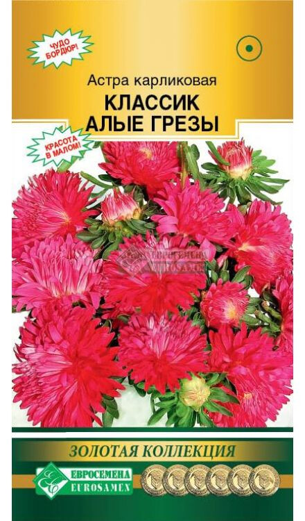 Астра в переводе с латыни означает звезда. И действительно, ее тонкие изящные лепестки напоминают лучи далеких звезд. Романтическое поверье гласит: если в полночь выйти в сад и встать среди астр, то можно услышать тихий шепот. Это земные звезды разговаривают со своими небесными сестрами! Родина астры — Китай, где ее выращивали в садах с глубокой древности. В китайской культуре этот цветок издавна символизировал красоту, элегантность и скромность. Их еще называют королевами маргариток. Они действительно напоминают цветки маргариток, но крупнее их. Классик Алые Грезы -низкорослая астра с крупными махровыми цветками, излучающими тонкий аромат. Праздник цветения продолжается до заморозков. Эти изумительные цветы придают палисаднику естественное очарование. Важная особенность этой астры - исключительная плотность соцветий, цветки настолько крепкие, что не страдают от дождя и ветра, очень долго не теряет своей привлекательности. Высота растения-25-30 см Диаметр Цветка-6 см