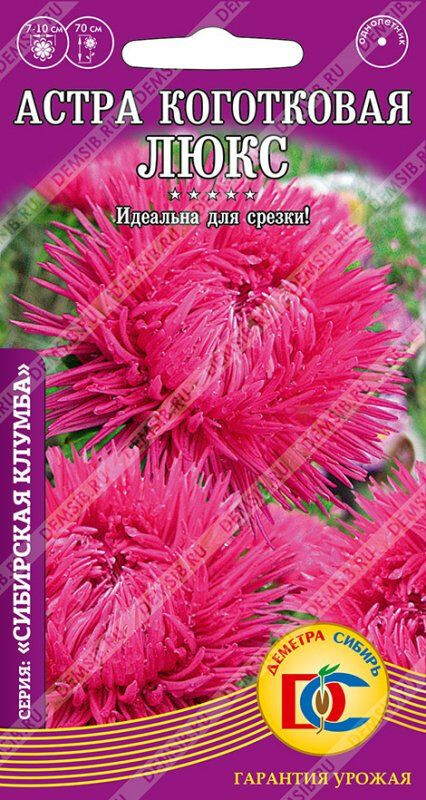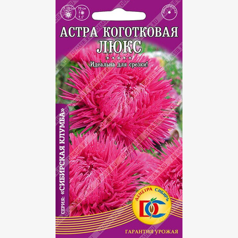 Прекрасная срезочная астра, с совершенно новой формой цветка. Растение пирамидальной формы, высотой 70 см. Цветоносы прочные, длиной 50 см. Соцветия округло-плоские, махровые, диаметром 7-10 см. Лепестки РОЗОВЫЕ, напоминают лучи, слегка загнуты внутрь, закрывая желтый диск трубчатых цветков. Цветение обильное с августа по сентябрь. Астра Люкс придаст особенное очарование цветникам, рабаткам, бордюрам.