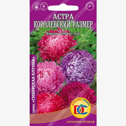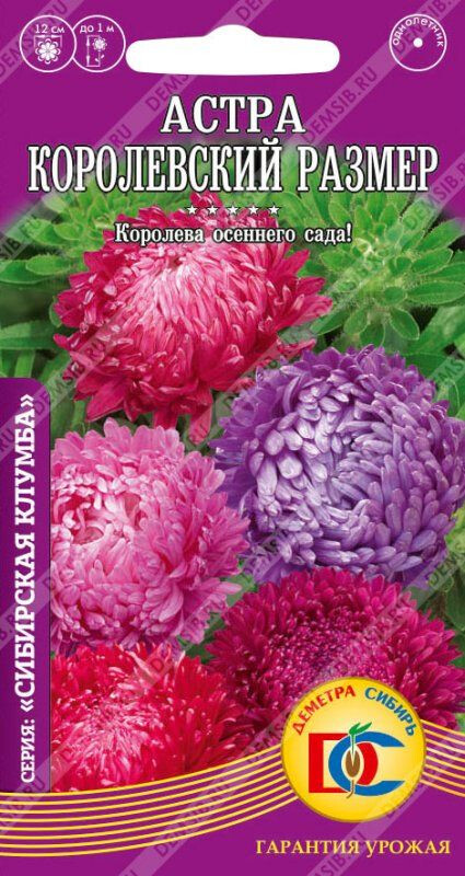 Шикарная смесь разноцветных астр "Королевский размер" - ни с чем несравнимое удовольствие! Создает атмосферу праздника в саду и за свою красоту по достоинству будет высоко оценена. Пышные кусты крепкие, пирамидальные, высотой 90-100 см. Соцветия густомахровые, полусферической формы, диаметром более 12 см, на длинных, прочных цветоносах. Цветет обильно, длительно - с начала августа до устойчивых заморозков. Обладает сравнительно высокой устойчивостью к болезням.