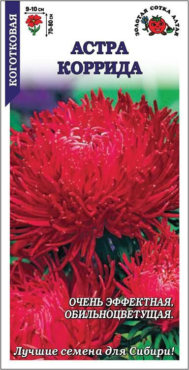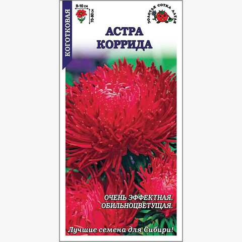 Очень эффектная астра, цветущая обильно и длительно. Куст пирамидальный, прочный, формирует до 10-15 высоких цветоносов. Соцветия яркого красного цвета, махровые, с короткими загнутыми внутрь и закрученными лепестками. Сорт с успехом используется для получения высококачественной срезки, оформления вазонов и балконных ящиков.