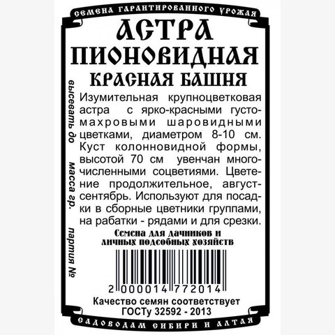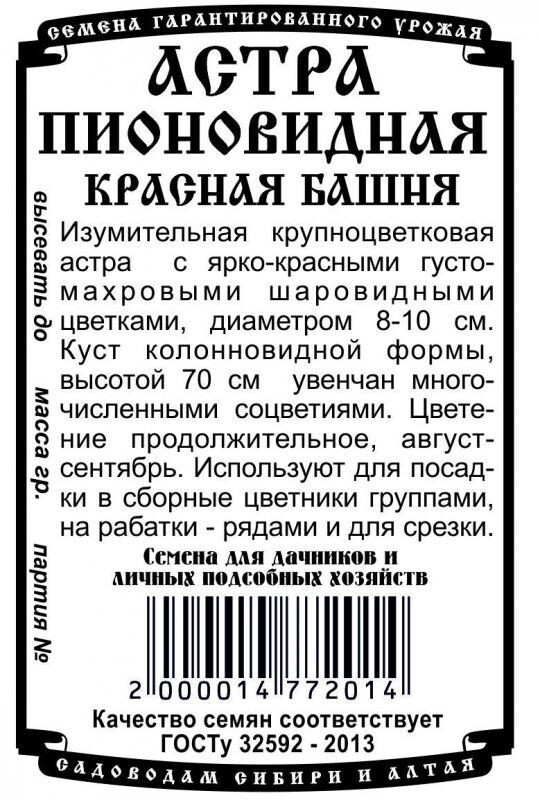 Изумительная крупноцветковая астра с ярко-красными густомахровыми шаровидными цветками, диаметром 8-10 см. Куст колонновидной формы, высотой 70 см увенчан многочисленными соцветиями. Цветение продолжительное, август-сентябрь. Используют для посадки в сборные цветники группами, на рабатки - рядами и для срезки.