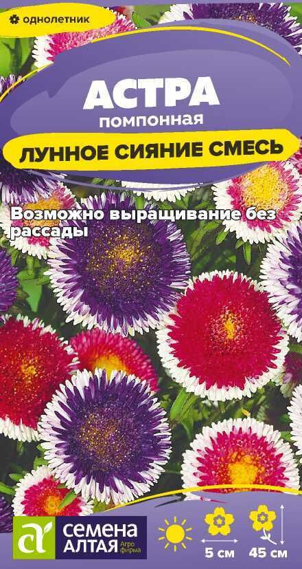 Яркая смесь помпонных астр с оригинальной расцветкой. Растение формирует компактный куст высотой до 45 см, на крепких цветоносах (в количестве до 20 шт.) формируются густомахровые хризантемовидные темно-красные и сине-фиолетовые с белой окантовкой соцветия. Отмечен любителями астр, как один из наиболее декоративных и оригинальных сортов. Подходит для посадки в высоком бордюре, на смешанной клумбе или в групповых посадках на газоне. Холодостойкое, светолюбивое растение, может расти в полутени. Не выносит переувлажнения и засухи. Хорошо растет на обычной садовой почве без свежей органики, кислые почвы необходимо нейтрализовать известью. Семена на рассаду высевают в марте-апреле, глубина заделки 0,5 см. Для улучшения всхожести рекомендуется перед посевом замочить семена на 10 минут в спиртосодержащей жидкости. Посевы содержат при температуре +15-18°С. Сеянцы пикируют с появлением первой пары настоящих листочков. В открытый грунт рассаду высаживают во второй половине мая. Перед высадкой в открытый грунт её закаливают в течение 1-2 недель, снизив температуру до +10°С. Схема посадки 25х25 см. Возможен посев семян в открытый грунт в конце апреля под временное укрытие на глубину 0,5-1,0 см (с последующим прореживанием всходов), или под зиму (в конце октября) на глубину 3 см. Сверху посевы мульчируют торфом или опилками слоем 3-5 см. Весной посевы раскрывают. Цветение длится с июля до конца сентября.