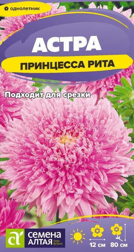 Однолетняя астра сортотипа Принцесса с ровными крепкими цветоносами. Куст раскидистый, в высоту достигает 80 см. Соцветия густомахровые яркие, состоят из большого числа длинных трубчатых цветков, обрамленных несколькими рядами язычковых. Диаметр соцветий до 12 см, окраска достаточно необычная: серебристо-розовая с переходом к жёлтому глазку в центре соцветия. Используется для посадки в сборные цветники группами, на рабатки рядами, великолепна в срезке. Холодостойкое, светолюбивое растение, может расти в полутени. Не выносит переувлажнения и засухи. Хорошо растет на обычной садовой почве без свежей органики, кислые почвы необходимо нейтрализовать известью. Семена на рассаду высевают в марте-апреле, глубина заделки 0,5 см. Для улучшения всхожести рекомендуется перед посевом замочить семена на 10 минут в спиртосодержащей жидкости. Посевы содержат при температуре +15-18°С. Сеянцы пикируют с появлением первой пары настоящих листочков. В открытый грунт рассаду высаживают во второй половине мая. Перед высадкой в открытый грунт её закаливают в течение 1-2 недель, снизив температуру до +10°С. Схема посадки 30х30 см. Возможен посев семян в открытый грунт в конце апреля под временное укрытие на глубину 0,5-1,0 см (с последующим прореживанием всходов), или под зиму (в конце октября) на глубину 3 см. Сверху посевы мульчируют торфом или опилками слоем 3-5 см. Весной посевы раскрывают. Цветение длится с июля до конца сентября.