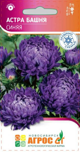 Однолетник. Сортотип Пионовидные. Растение колоновидное с прочными длинными цветоносами. Соцветия крупные (до 8 см в диаметре), густомахровые, синие. Растение светолюбивое, холодостойкое (может выносить заморозки до -3-4 ºС). Предпочитает рыхлые питательные почвы. В засушливый период нуждается в поливе. Уход обычный – прополки, аккуратное рыхление, 2-3 подкормки минеральными удобрениями. Семена на рассаду сеют в конце марта – начале апреля. Всходы появляются на 7-14 день. При появлении первого настоящего листа сеянцы пикируют. Если подсемядольное колено у сеянцев вытянулось, то при пикировке их можно заглубить почти до семядольных листочков. В открытый грунт рассаду можно высаживать с середины мая. Возможен весенний и подзимний посев в грунт. В озеленении астры применяются очень широко. Их высаживают на клумбах, рабатках, миксбордерах, в группах. Используют для срезки. 65-75 III-IV V;IX-X V-IV 35x35 VIII-IX