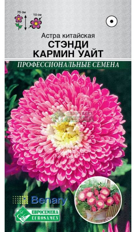 Callistephus chinensis Standy Carmine & White Исключительное многообразие сортов астры заслуживает справедливого признания: они разнообразны по форме и размеру соцветий, окрашены в самые невероятные цвета, миниатюрные, либо гигантские по высоте, они обеспечивают нам буйство красок и фейерверк эмоций с середины лета до поздней осени. Ландшафтные дизайнеры, садоводы, жители частных домов, поклонники пышного цветения астр активно используют сотни интересных сортов для декорирования различных зон. Астра Стэнди от Benary отличается сильноветвистым габитусом растений и полусферическими густомахровыми соцветиями. Цветки с широкими язычковыми лепестками, расположенными в 1-4 ряда, по краям имеют насыщенный розовый окрас, а ближе к центру - окрашены в желтый цвет. Отлично смотрится в высоких бордюрах, на смешанных клумбах или в групповых посадках на газоне. Астры серии Standy в букетах просто неотразимы, долго не теряют своих декоративных качеств! Высокие показатели всхожести и сортовой чистоты.