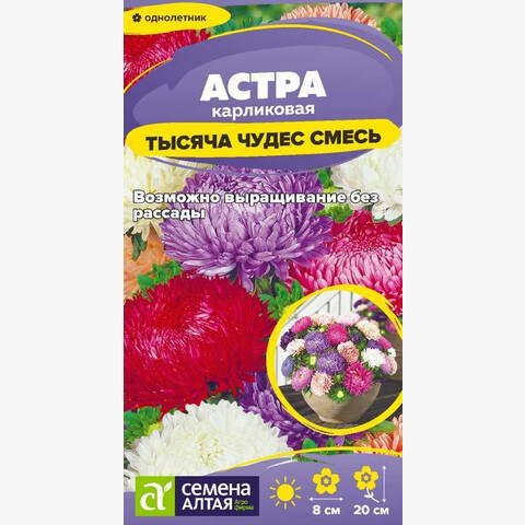 Бордюрная низкорослая астра, одна из самых востребованных. Куст высотой до 20 см весь покрыт крупными цветками различной окраски (белой, темно-синей, ярко-розовой и др.) до 8 см диаметром. Идеально подходит для выращивания в горшечной культуре. Выращивается в смешанных цветниках, партерных клумбах, вазонах, широко используется в качестве бордюрной культуры. Холодостойкое, светолюбивое растение, может расти в полутени. Не выносит переувлажнения и засухи. Хорошо растет на обычной садовой почве без свежей органики, кислые почвы необходимо нейтрализовать известью. Семена на рассаду высевают в марте-апреле, глубина заделки 0,5 см. Для улучшения всхожести рекомендуется перед посевом замочить семена на 10 минут в спиртосодержащей жидкости. Посевы содержат при температуре +15-18°С. Сеянцы пикируют с появлением первой пары настоящих листочков. В открытый грунт рассаду высаживают во второй половине мая. Перед высадкой в открытый грунт её закаливают в течение 1-2 недель, снизив температуру до +10°С. Схема посадки 20х20 см. Возможен посев семян в открытый грунт в конце апреля под временное укрытие на глубину 0,5-1,0 см (с последующим прореживанием всходов), или под зиму (в конце октября) на глубину 3 см. Сверху посевы мульчируют торфом или опилками слоем 3-5 см. Весной посевы раскрывают. Цветение длится с июля до конца сентября.