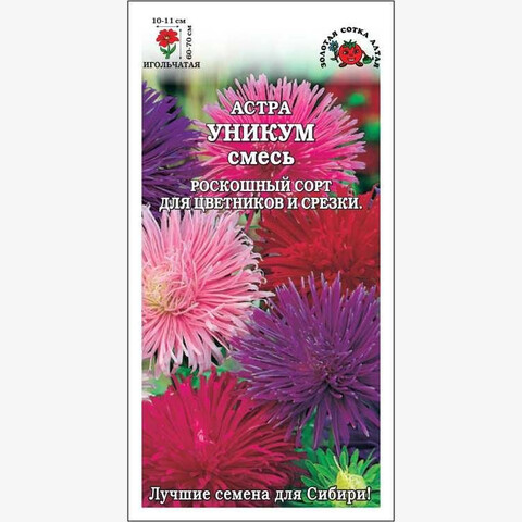 Роскошная обильноцветущая астра, займет достойное место в вашем цветнике. Формирует широкий, прочный, сильноветвистый куст высотой до 60 см. Соцветия крупные полусферической формы, густомахровые, очень изящные. Одно растение образует до 14 цветоносов, образуя роскошный букет. Сорт отлично смотрится при посадке группами в цветниках или рядами в рабатках, великолепен в срезке. Холодостойкое, светолюбивое растение, может расти в полутени. Не выносит переувлажнения и засухи. Хорошо растет на обычной садовой почве без свежей органики, кислые почвы необходимо нейтрализовать известью. Семена на рассаду высевают в марте-апреле, глубина заделки 0,5 см. Для улучшения всхожести рекомендуется перед посевом замочить семена на 10 минут в спиртосодержащей жидкости. Посевы содержат при температуре +15-18°С. Сеянцы пикируют с появлением первой пары настоящих листочков. В открытый грунт рассаду высаживают во второй половине мая. Перед высадкой в открытый грунт её закаливают в течение 1-2 недель, снизив температуру до +10°С. Схема посадки 25х25 см. Возможен посев семян в открытый грунт в конце апреля под временное укрытие на глубину 0,5-1,0 см (с последующим прореживанием всходов), или под зиму (в конце октября) на глубину 3 см. Сверху посевы мульчируют торфом или опилками слоем 3-5 см. Весной посевы раскрывают. Цветение длится с июля до конца сентября.