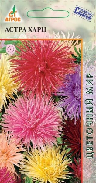 Однолетник. Сортотип Харц (Лучевые). Крупноцветковая, эффектная группа астр. Растения с очень низко разветвляющимся крепким стеблем и мощными однородными соцветиями. Цветок исключительно крупный, до 18 см в диаметре, характерной изящной формы. Лепестки длинные, скрученные в тонкие трубочки. Форма, размер и качество цветов прекрасно подходят для срезки. Эта группа с успехом может выращиваться в теплицах весной и осенью. Растение светолюбивое, холодостойкое (может выносить заморозки до -3-4°С). Предпочитает рыхлые питательные почвы. В засушливый период нуждается в поливе. Уход обычный – прополки, аккуратное рыхление, 2-3 подкормки минеральными удобрениями. Семена сеют в конце марта – начале апреля. Всходы появляются на 7-14 день. При появлении первого настоящего листа сеянцы пикируют. Если подсемядольное колено у сеянцев сильно вытянулось, то при пикировке их можно заглубить почти до семядольных листочков. В открытый грунт рассаду можно высаживать с середины мая. Возможен весенний и подзимний посев в грунт. В озеленении астры применяются очень широко. Их высаживают на клумбах, рабатках, миксбордерах, в группах. 60-70 III-IV V;IX-X V-VI 30х30 VIII-IX