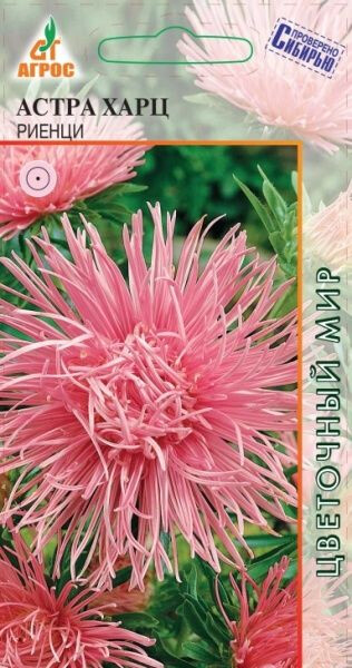 Однолетник. Сортотип Харц (Лучевые). Крупноцветковая, эффектная группа астр. Растения с очень низко разветвляющимся крепким стеблем и мощными однородными соцветиями. Цветок исключительно крупный, до 18 см в диаметре, характерной изящной формы. Лепестки длинные, скрученные в тонкие трубочки. Форма, размер и качество цветов прекрасно подходят для срезки. Эта группа с успехом может выращиваться в теплицах весной и осенью. . Окраска цветка светло-розовая. Растение светолюбивое, холодостойкое (может выносить заморозки до -3-4°С). Предпочитает рыхлые питательные почвы. В засушливый период нуждается в поливе. Уход обычный – прополки, аккуратное рыхление, 2-3 подкормки минеральными удобрениями. Семена на рассаду высевают в конце марта-начале апреля. Возможен весенний и подзимний посев в грунт. Всходы появляются на 7-14 день. При появлении первого настоящего листа сеянцы пикируют. Если подсемядольное колено сильно вытянулось, то при пикировке его можно заглубить. В открытый грунт можно высаживать с середины мая. Используют широко: на клумбах, рабатках, миксбордерах, в группах. 60-70 III-IV V,IX-X V-VI 30х30 VIII-IX