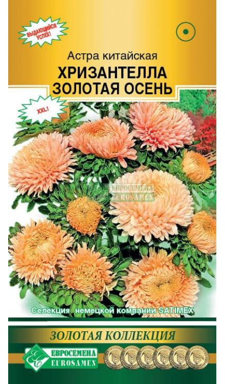 Callistephus chinensis Chrisantella Autumn Forest Даже самый придирчивый садовод скажет, что астра-это одна из самых красивых букетных цветов, которая могла по достоинству занять не только место на участке, но и в каждом сердце любой женщины. Селекционеры проводят много опытов и испытаний, чтобы вывести новый сорт или гибрид, которого не было ранее. Хризантелла – результат скрещивания устойчивой к непогоде хризантемы и утонченной астры, это настроение, воплощенное в цветке от немецкой компании Satimex! Селекционерам удалось получить совершенно новый тип астры, выращиваемой из семян. Это группа астры, объединенная не только общими ботаническими признаками, но и впечатлением, ассоциациями и переживаниями. Однородность растений обеспечена калибровкой семян. Растение идеально для выращивания цветов на срезку. Куст высокий, стебель толстый и жесткий, активно формирует цветоносы второго порядка, которые дают 10-15 цветков на куст. Цветки эффектные, крупные, с жесткими лепестками необыкновенного теплого и солнечного цвета. Форма цветка и расцветка подтверждена грунт-контролем данной партии.