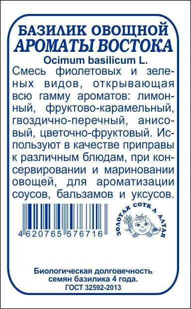 Смесь фиолетовых и зеленых видов, открывающая всю гамму ароматов: лимонный, фруктово-карамельный, анисовый, гвоздично-перечный, цветочно-фруктовый. Базилик используют в свежем и сушеном виде в качестве приправы к различным блюдам, добавляют при консервировании и мариновании овощей, для ароматизации соусов, бальзамов и уксусов.