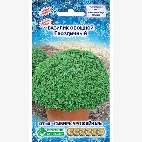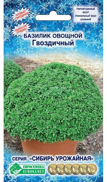 Обширные полезные свойства базилика известны давно, в Индии он считается священной травой, почитаемой наравне с лотосом. Современные исследования подтверждают большинство предполагаемых целебных свойств этого растения, а ряд лечебных качеств базилика уже сегодня широко используется в клинической практике. Базилик Гвоздичный известен своим ярко - выраженным ароматом и вкусом, напоминающими всем известную гвоздику, поэтому легко заменяет эту специю в кулинарии. Отличается крупным ланцетно-овальным листом с коротким черешком, белым цветком и красивым ярко-зеленым цветом. Очень удобно, ведь на одной грядке, при абсолютно одинаковых условиях, вы можете выращивать 2 разных по аромату базилика, которые применяются для разных блюд! Тем более, что гвоздика широко используется в кулинарии. Также эфирные масла базилика обладают мощными целебными свойствами, что всегда является огромным бонусом при выращивании любого растения. Одним словом, это настоящая удача, выращивание такой необычной, но очень необходимой специи!