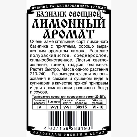 базилик Лимонный аромат0,3 гр Б/П/ Деметра
