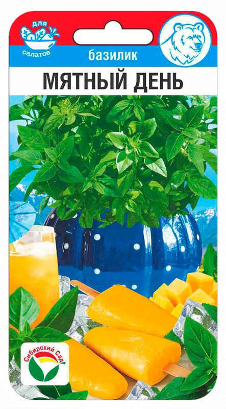 Среднеранний (45-50 дней) сорт базилика овощного с освежающе приятным, ментоловым ароматом. Благодаря своему оригинальному аромату идеально подходит для использования в свежем виде, как пикантная пряно вкусовая добавка в напитки и различные блюда. Также отлично сохраняет свои свойства при сушке и консервировании. Выращивается в защищенном и открытом грунте во всех регионах РФ. Растение низкое, розетка листьев полуприподнятая с округлой кроной, достигает высоты 20–25 см и разрастается в диаметре до 28–32 см. Облиственность сильная, лист темно-зеленый, глянцевый, яйцевидный, средней ширины и мелкозубчатый по краю. Окраска цветков белая. Масса одного растения – около 220 г. Аромат зелени, необычный, ментоловый. Урожайность 2,2кг/м2.