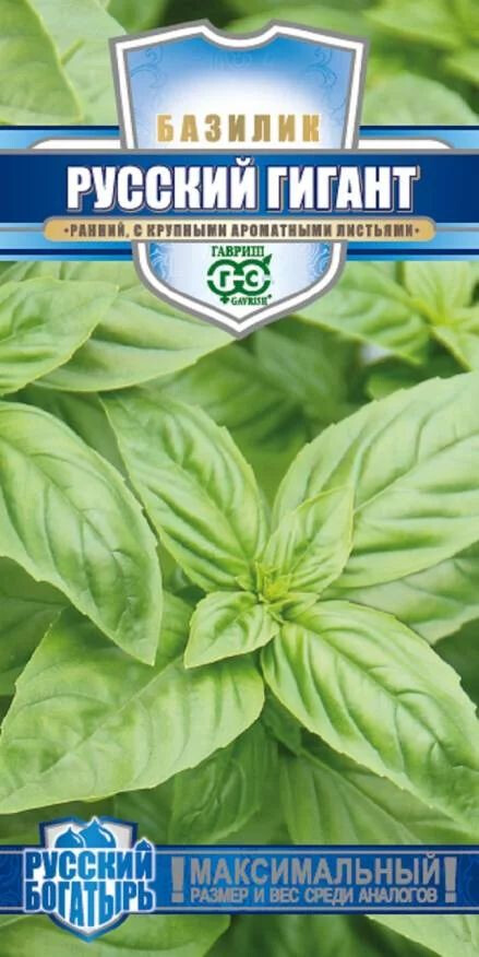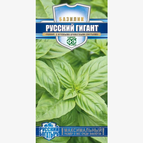 Ранний (от всходов до технической спелости 50-60 дней) сорт крупнолистного базилика с зелеными, сладкими листьями впечатляющего размера. Приятный гвоздичный вкус и пряный аромат придаст пикантности салатами и супам, гармонично дополнит блюда из рыбы и мяса, прекрасно сочетается с чесночным соусом. Растение прямостоячее, высотой 50-60 см. Базилик обладает тонизирующими свойствами, улучшает пищеварение. Выращивают рассадным способом или прямым посевом в открытый грунт. Посев на рассаду производят в конце марта – начале апреля. Посев в грунт в мае или начале июня. Высадка рассады в грунт – начало июня. Схема посадки 30x30 см. Предпочитает хорошо структурированные, богатые гумусом почвы. Нуждается в регулярных поливах.