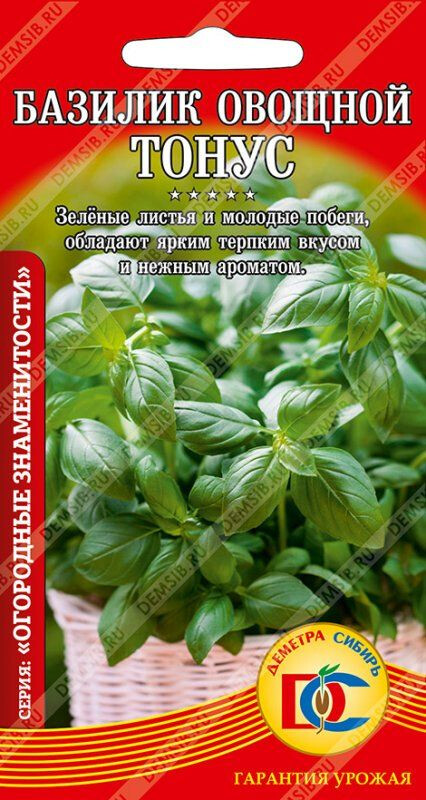 Среднеспелый (70-76 дней) сорт. Обладает оригинальным и сильным ароматом. Растение прямостоячее, высотой до 55 см, массой 25-38 г. Листья зеленые, черешковые, маслянистые, с мелкозубчатыми краями. Листья и побеги богаты витаминами, эфирными маслами и фитонцидами. Свежие и высушенные листья хороши в качестве приправы к рыбным и мясным блюдам, соусам и салатам.
