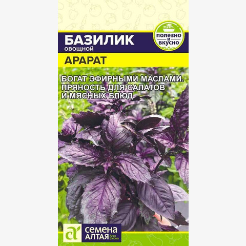 Среднеспелый сорт. Период от всходов до начала цветения 70 дней. Растение высотой до 60 см. Листья крупные, темно-фиолетовые, богаты эфирными маслами, обладают приятным анисовым ароматом. Листья, молодые побеги используются в качестве приправы, для маринования, соления, в кулинарии в свежем и сушеном виде. Используется в народной медицине при заболевании желудка, мочевого пузыря, при кашле. Наружно для заживления ран. Место посадки: солнечные участки с легкой рыхлой почвой. Хорошие предшественники лук, томаты и другие корнеплоды Освещение: обильное, плохо переносит затенение Предпосевная подготовка: не проводится Сроки посева: первый посев проводят при прогревании почвы до +10°С (апрель-июль), в течении теплого периода можно проводить повторные посевы. Для получения ранней зелени можно выращивать через рассаду, а также в качестве комнатной культуры Посев на рассаду: семена раскладывают на уплотненный и предварительно увлажненный грунт, заделывают на глубину 0,5-0,7 см, обильно увлажняют теплой водой, накрывают пленкой до появления всходов. Важно не допустить пересыхания грунта Посев в грунт: семена раскладывают в уплотненные бороздки глубиной 0,5-0,7 см, расстояние между рядками не менее 15 см, присыпают грунтом, уплотняют, накрывают тонким укрывным материалом и очень обильно поливают теплой водой через укрывной материал (во избежание размывания почвы и семян). Не допускают пересыхания посевов, укрывной материал снимают при появлении 70% всходов Пикировка/перевалка: при рассадном выращивании высаживают в открытый грунт или теплицу при миновании угрозы возвратных заморозков. После высадки притеняют 5-7 дней Уход: хорошо отзывается на срезание зеленой массы на уровне грунта для повторного отрастания