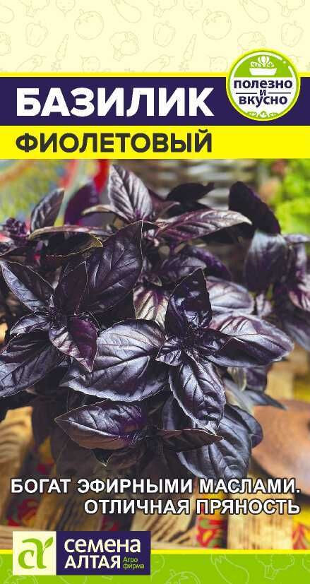 Среднеспелый сорт. Срезку начинают на 60-70 день. Растение высотой 50 см. Листья базилика обладают пряным вкусом, что обусловлено содержанием эфирного масла. Обладает дезинфицирующим действием, возбуждает аппетит, снимает спазмы желудка и способствует укреплению нервной системы. Свежие и сухие листья базилика применяют как приправу в кулинарии, а также при засолке и консервировании. Место посадки: солнечные участки с легкой рыхлой почвой. Хорошие предшественники лук, томаты и другие корнеплоды Освещение: обильное, плохо переносит затенение Предпосевная подготовка: не проводится Сроки посева: первый посев проводят при прогревании почвы до +10°С (апрель-июль), в течении теплого периода можно проводить повторные посевы. Для получения ранней зелени можно выращивать через рассаду, а также в качестве комнатной культуры Посев на рассаду: семена раскладывают на уплотненный и предварительно увлажненный грунт, заделывают на глубину 0,5-0,7 см, обильно увлажняют теплой водой, накрывают пленкой до появления всходов. Важно не допустить пересыхания грунта Посев в грунт: семена раскладывают в уплотненные бороздки глубиной 0,5-0,7 см, расстояние между рядками не менее 15 см, присыпают грунтом, уплотняют, накрывают тонким укрывным материалом и очень обильно поливают теплой водой через укрывной материал (во избежание размывания почвы и семян). Не допускают пересыхания посевов, укрывной материал снимают при появлении 70% всходов Пикировка/перевалка: при рассадном выращивании высаживают в открытый грунт или теплицу при миновании угрозы возвратных заморозков. После высадки притеняют 5-7 дней Уход: хорошо отзывается на срезание зеленой массы на уровне грунта для повторного отрастания